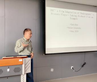 2019年5月16日16:00-18:00,河南大学外国语学院博士生导师高继海教授应田俊武教授的邀请来我院讲学。高继海教授是中国英国文学学会副会长、河南省外国文学学会会长,美国哥伦比亚大学富布莱特访问学者,开封市人大常委会副主任,国家社科规划项目外国文学学科通信评审专家和国家博士后基金评审专家,主要研究方向为英国小说和西方文论。