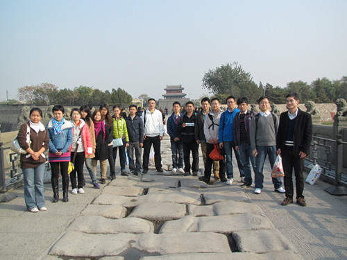 2011年11月7日,仪器科学与光电工程学院BY10171党支部与外国语学院研二党支部一行登上卢沟桥,缅怀先烈,立志传承革命精神。此次活动在北航研究生党支部创新基金的支持下进行,并得到了研究生工作部丁永斌老师,仪器学院张京娟老师、李成老师,外国语学院刘娜老师、王晓雪老师的指导。