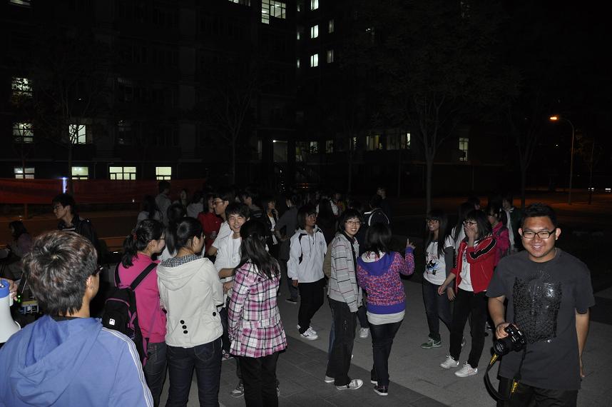 2011年4月27日19点30分由外国语学院2010级新生主办,101211班承办的"Speak And Share" 主题英语角活动在沙河校区3号公寓楼下如期举行。