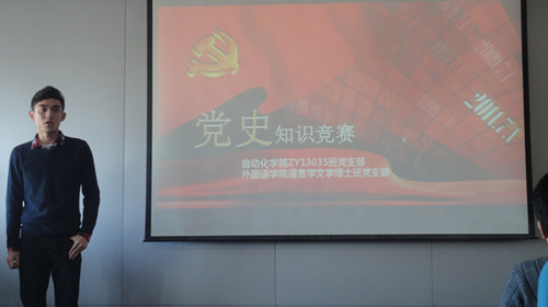 为进一步学习贯彻落实党的十八大精神,加强学习型、特色型、创新型党支部建设,引导党支部成员自觉加强理论知识学习,外国语学院2013级研究生语言学文学博士班联合党支部与自动化学院2013级研究生党支部精心组织了一次“学党史、知党情、跟党走”的党史知识竞赛。为确保本次活动的顺利进行,两党支部高度重视,认真部署,动员广大党员、预备党员及积极分子参与到本次活动中。