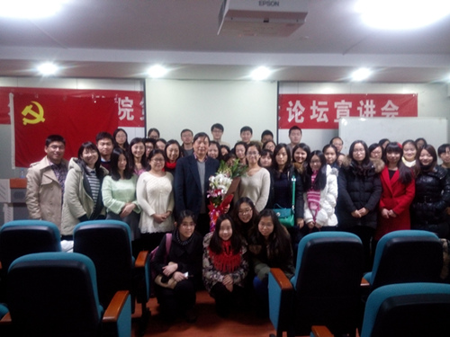 为深入推进学习和践行社会主义核心价值观,切实加强研究生的思想交流和沟通,调动广大研究生群体的积极性,外国语学院于2014年12月12日晚7点在如心806报告厅举行了新老党员思想交流活动,特地邀请了外国语学院马步宁教授与学生党员进行面对面交流。