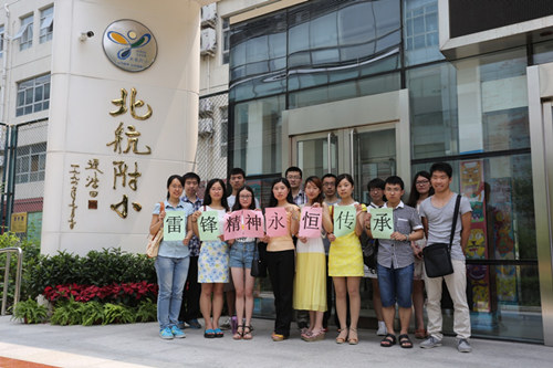 在研工部创新基金的支持下,航空学院ZY13051班、SY13055班党支部联合外国语学院语言学文学博士班联合党支部获批“今天我也是雷锋”项目-朝阳行动,赴北航附小志愿系列活动。